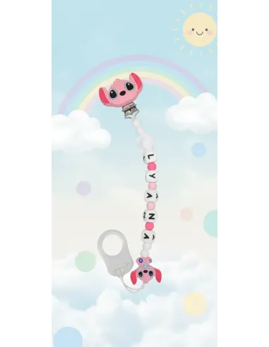 Découvrez ce porte-tétine ultra-mignon inspiré de Lilo & Stitch, parfait pour les bébés garçons fans d'aventures tendres ! Personnalisez-le avec le prénom de votre petit trésor pour un accessoire unique qui allie style pastel, sécurité et praticité quotidienne.